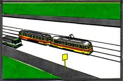 Tramvaiul din imaginea alaturata este oprit în statie. Conducatorul autofurgonetei îl poate depasi?