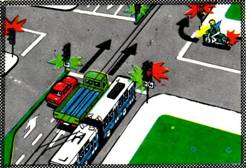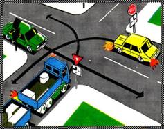 Priviti imaginea alaturata. În ce ordine vor trece prin intersectie cele trei autovehicule?