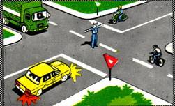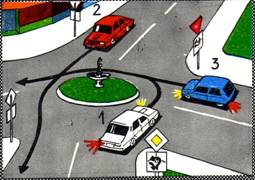 În ce ordine vor trece prin intersectie autovehiculele din imaginea alaturata?