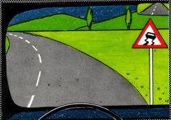 curba dubla sau o succesiune de mai mult de doua curbe, prima la stânga; urcari si coborâri repetate, drum cu denivelari si curbe.