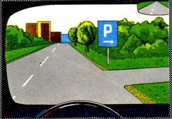 Cum puteti parca autovehiculul în situatia din imagine? longitudinal pe trotuar; transversal pe trotuar; în parcarea amenajata pe directia indicata.